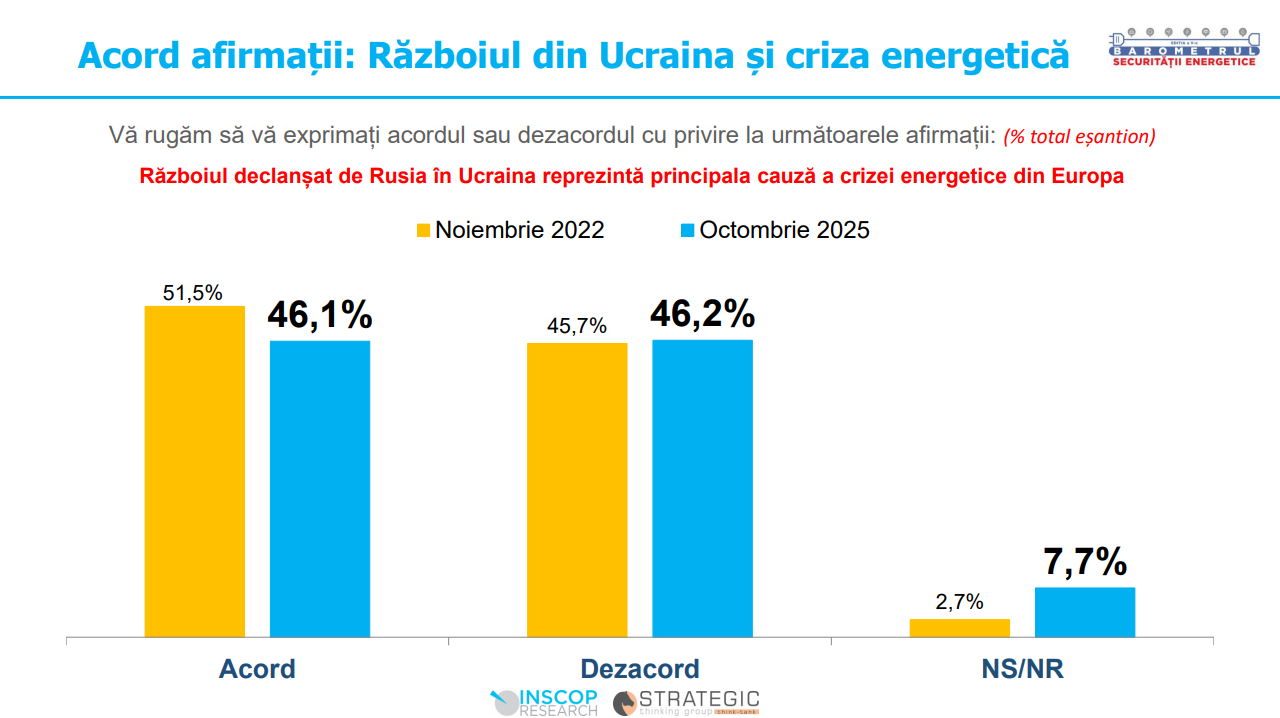 BURSA: Marţi, 28 octombrie, în sala Virgil Madgearu a Academiei de Studii Economice din Bucureşti, a avut loc prezentarea datelor ultimului Barometru al Securităţii Energetice realizat de INSCOP Research, în perioada 29 septembrie – 7 octombrie 2025, la comanda Strategic Thinking Group, conform unui comunicat transmis redacţiei.